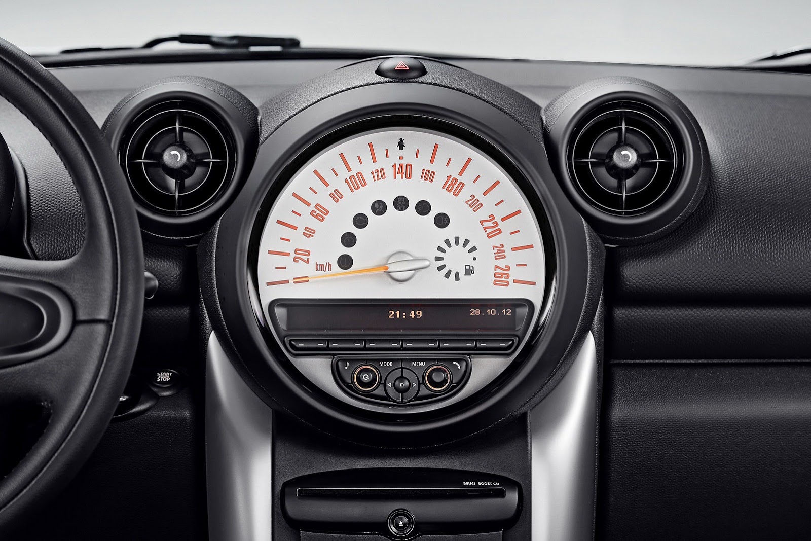 The modifications designed for the MINI Countryman will be rolled out across all model variants from November 2012. Open one of the front doors and the newly designed rings encircling the Centre Speedo and four air vents immediately stand out. They will now be presented across the board in the colour shade Carbon Black and also have an inner ring in high-gloss black or – as part of the Chrome Line Interior option – in chrome. Both in standard trim and with options specified, the fresh appeal of the colours and materials adds further lustre to the high-quality character of the MINI Countryman interior.