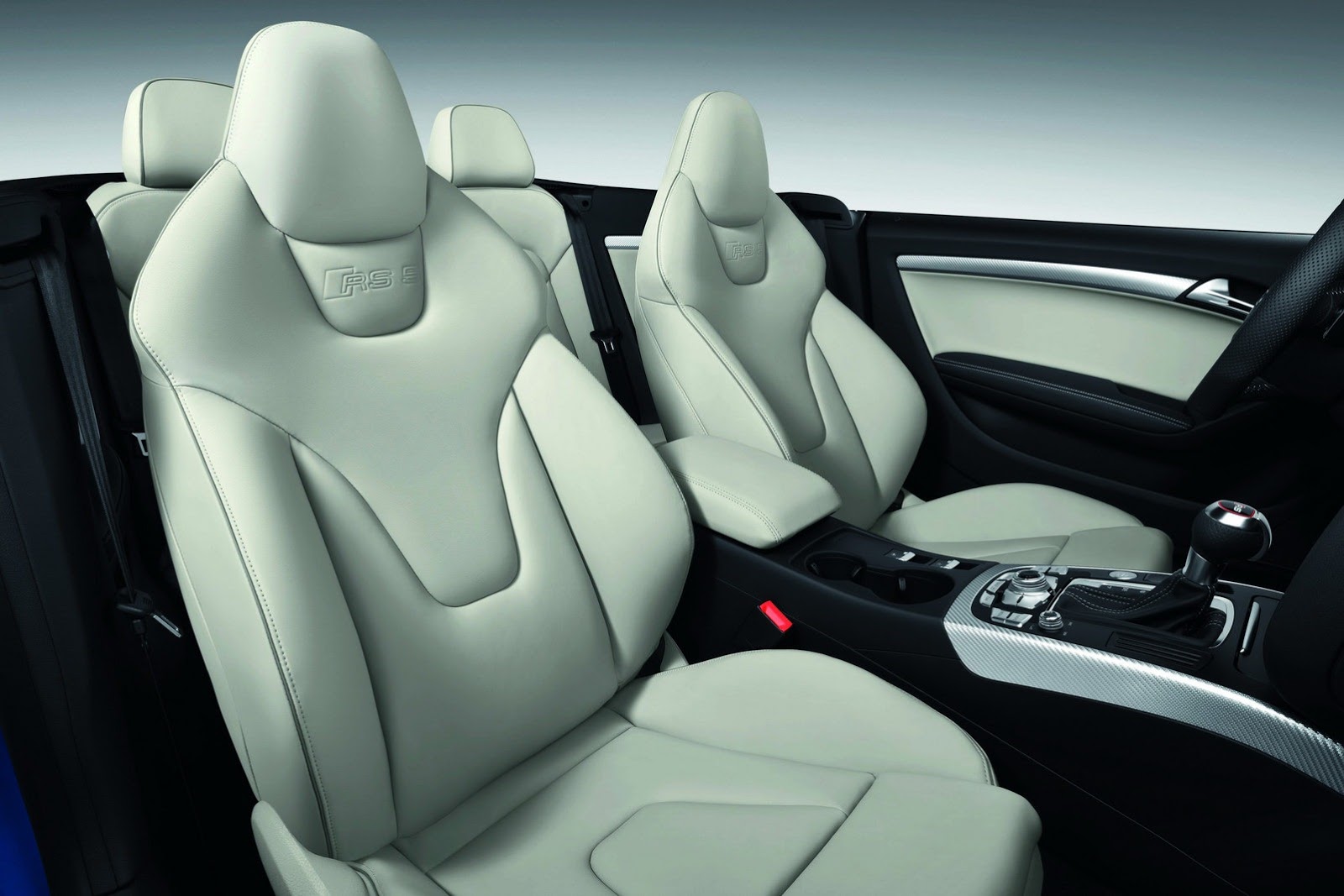 The interior of the Audi RS 5 Cabriolet is styled in black, and the inner soft top liner can be ordered in the optional color star silver. Fine chrome highlights, understated high-gloss black trim and carbon inlays underscore the car's dynamic appearance. Upon request, Audi can deliver the inlays in Aluminum Race, piano finish black, matt brushed aluminum or stainless steel mesh at no additional cost.