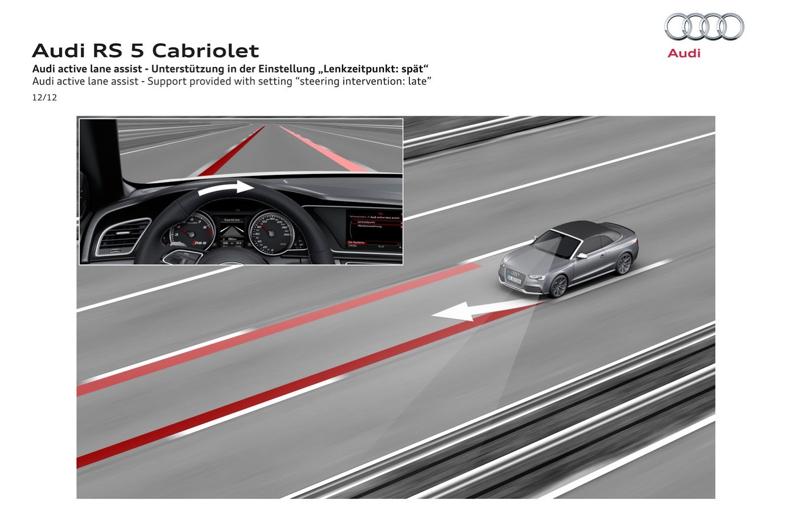 If a wheel at the inside of a curve begins to lose its grip when cornering at speed, it is braked slightly before any slip occurs - this keeps the RS 5 Cabriolet neutral for an exceptionally long time in extreme driving conditions.