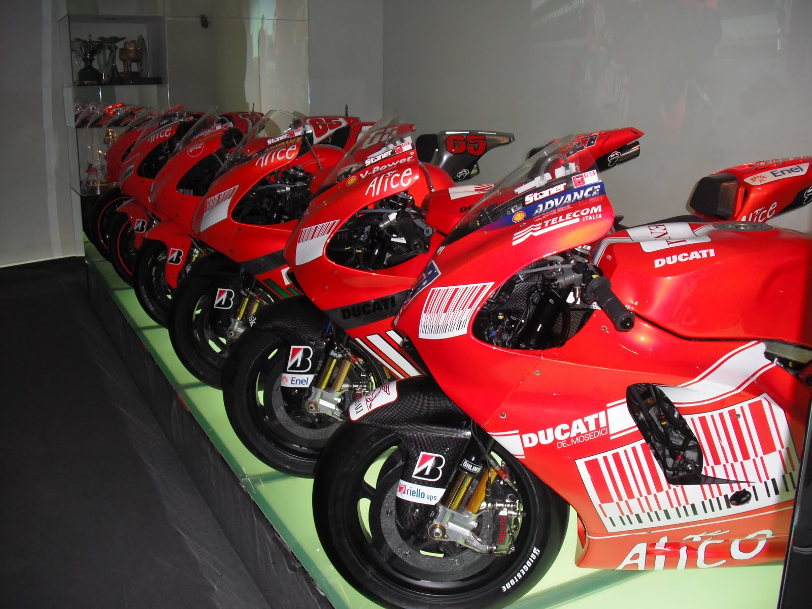 Dal Cucciolo alla Desmosedici la storia è raccolta in un particolare e alquanto originale ambiente caratterizzato da un grande casco rosso centrale a cui fanno da corona 33 mitiche moto poste su una pista illuminata.