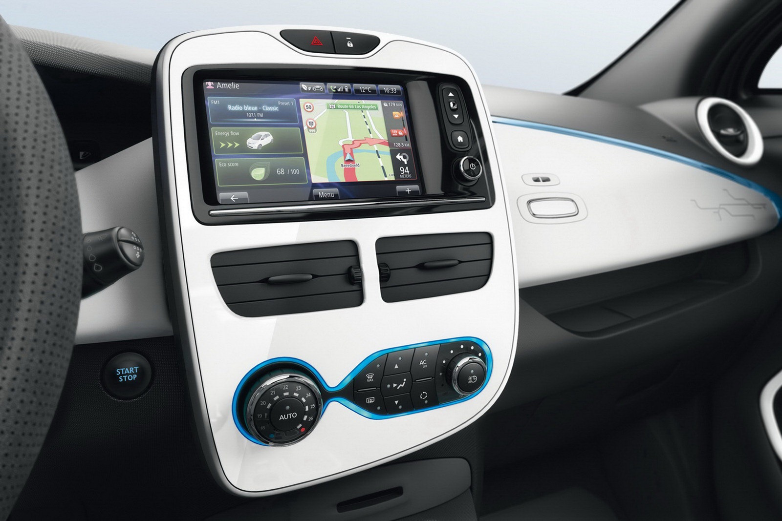 3. It is the first vehicle to be equipped with Range OptimiZEr, a system designed to optimise real-world range whatever the conditions thanks to three innovations: new-generation braking energy recovery, a heat pump and energy efficient Michelin Energy E-V tyres. For example, on a journey near and around a built-up area, drivers stand to benefit from a real-world range of 100km in cold conditions and 150km in mild weather.