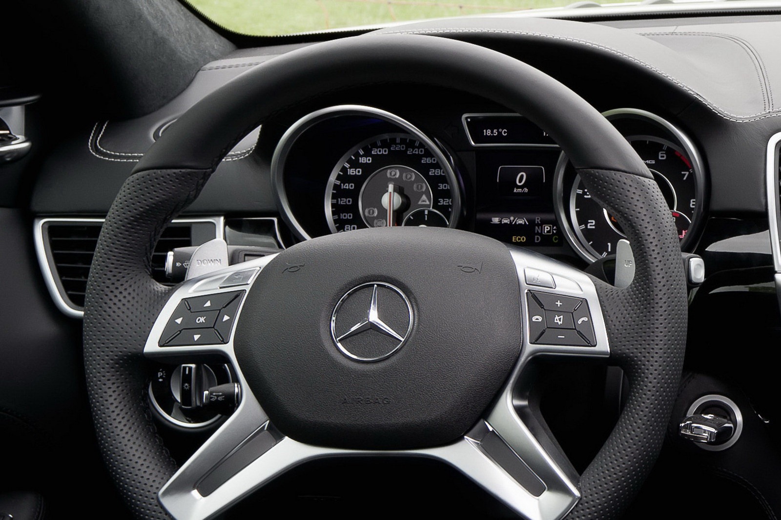 • AMG Performance steering wheel with DINAMICA microfibre in the grip area