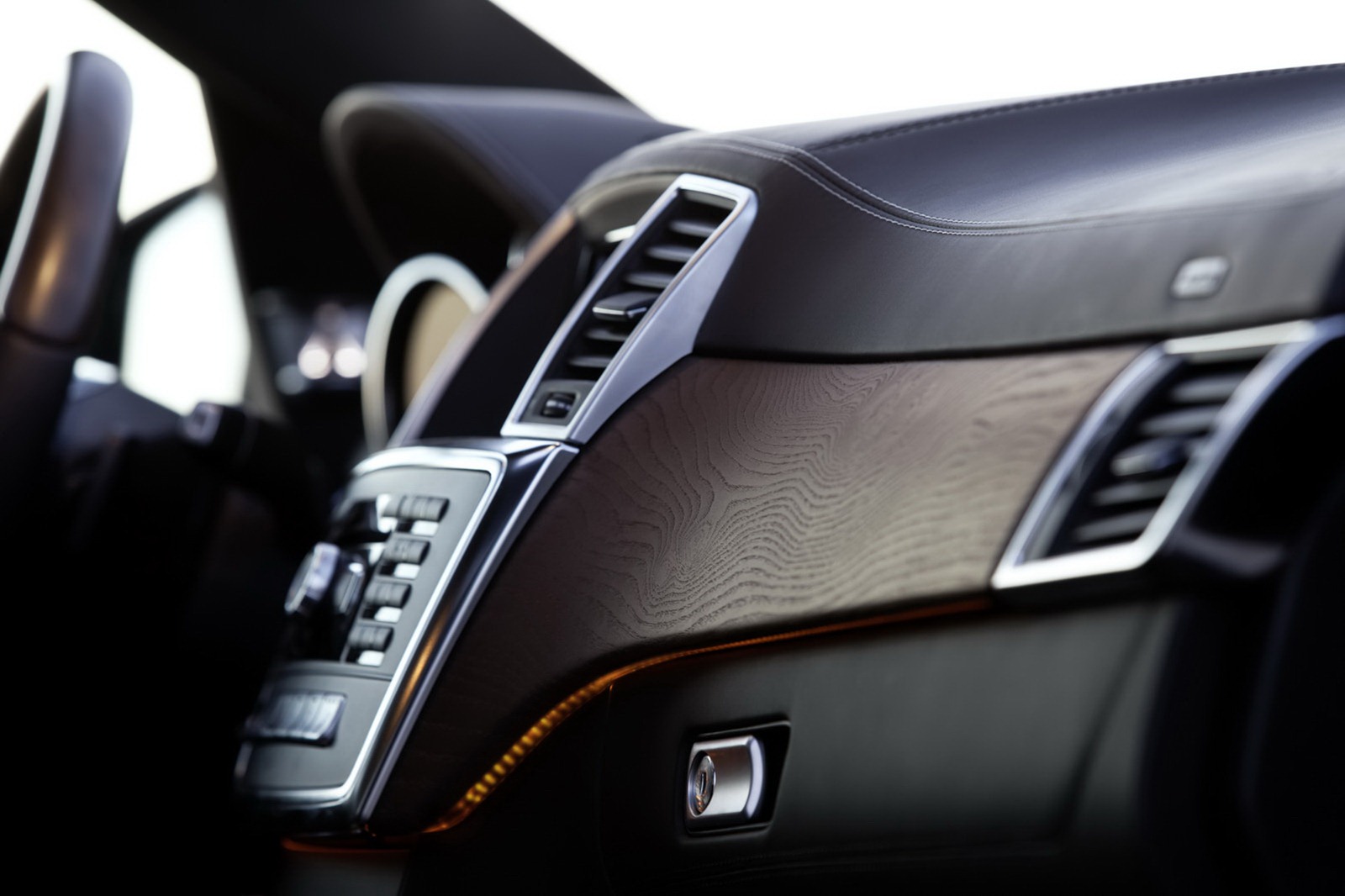 • Upper and lower section of the dashboard, centre console, beltlines, door panelling, door centre panels and armrests in the doors in designo leather