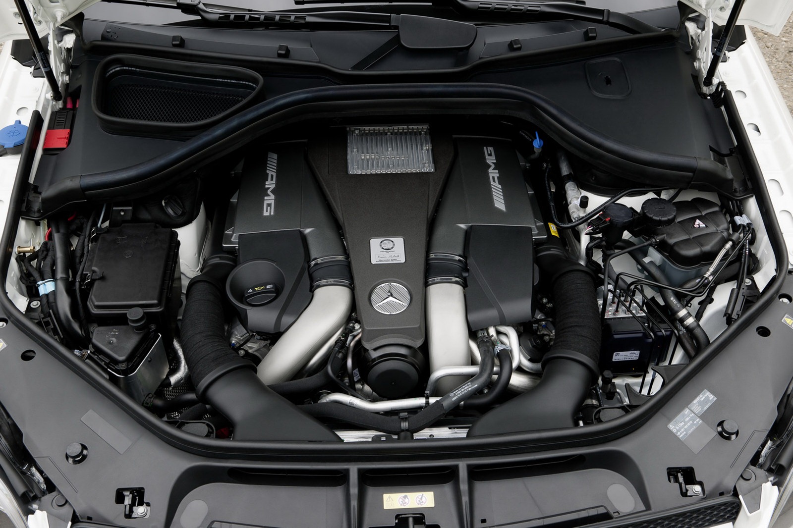 The AMG M 157 eight-cylinder engine features an innovative, high-tech power package including spray-guided direct petrol injection, piezo injectors, biturbo charging, air/water intercooling, all-aluminium crankcase, a four-valve-per-cylinder design with variable camshaft adjustment, plus alternator management and the ECO start/stop system.