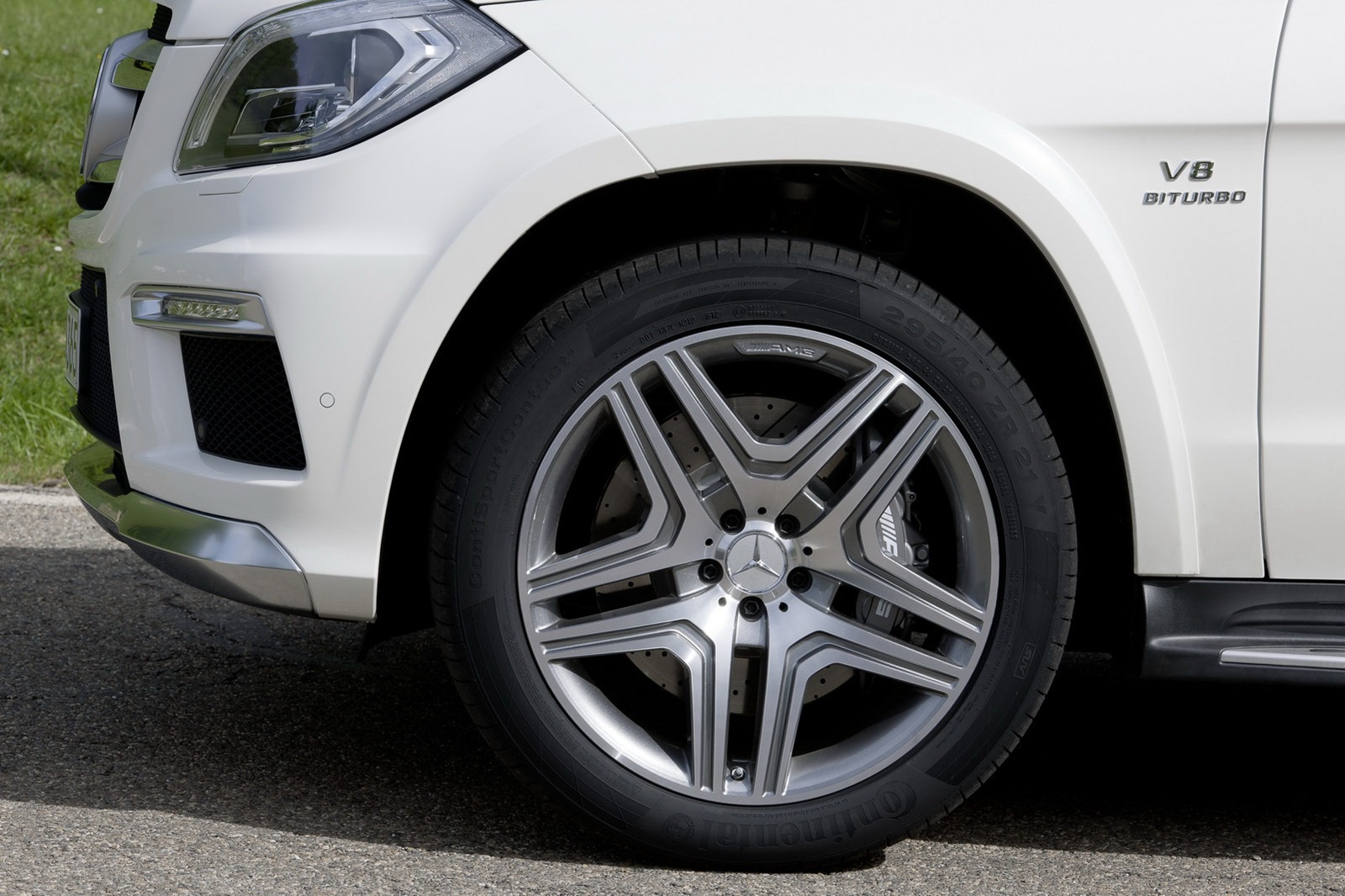 • 5-twin-spoke AMG light-alloy wheels (10 x 21 format) painted in titanium grey with a high-sheen finish, fitted with 295/40 R 21 tyres