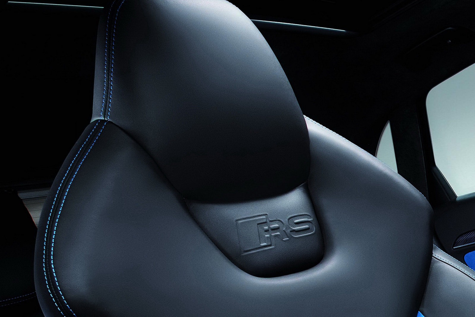 In the interior of the Audi RS Q3 concept, which gets plenty of light through a glass sunroof, cool black is the dominant color – on the roofliner, floor carpet, floor mats, leather-upholstered instrument panel and on large areas of the seat upholstery, which consists of Fine Nappa leather. Dark blue Alcantara is used as a contrasting element on the seat covers.