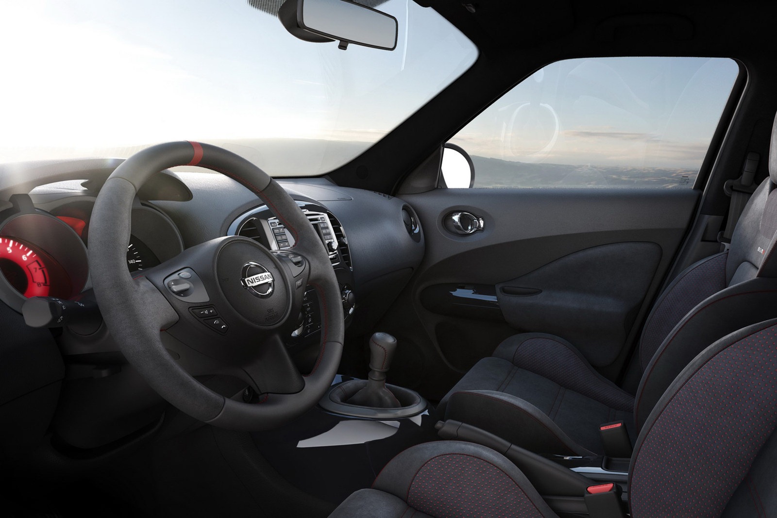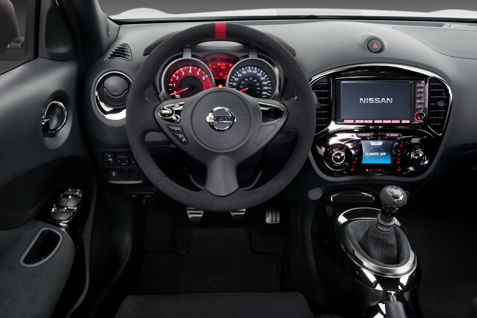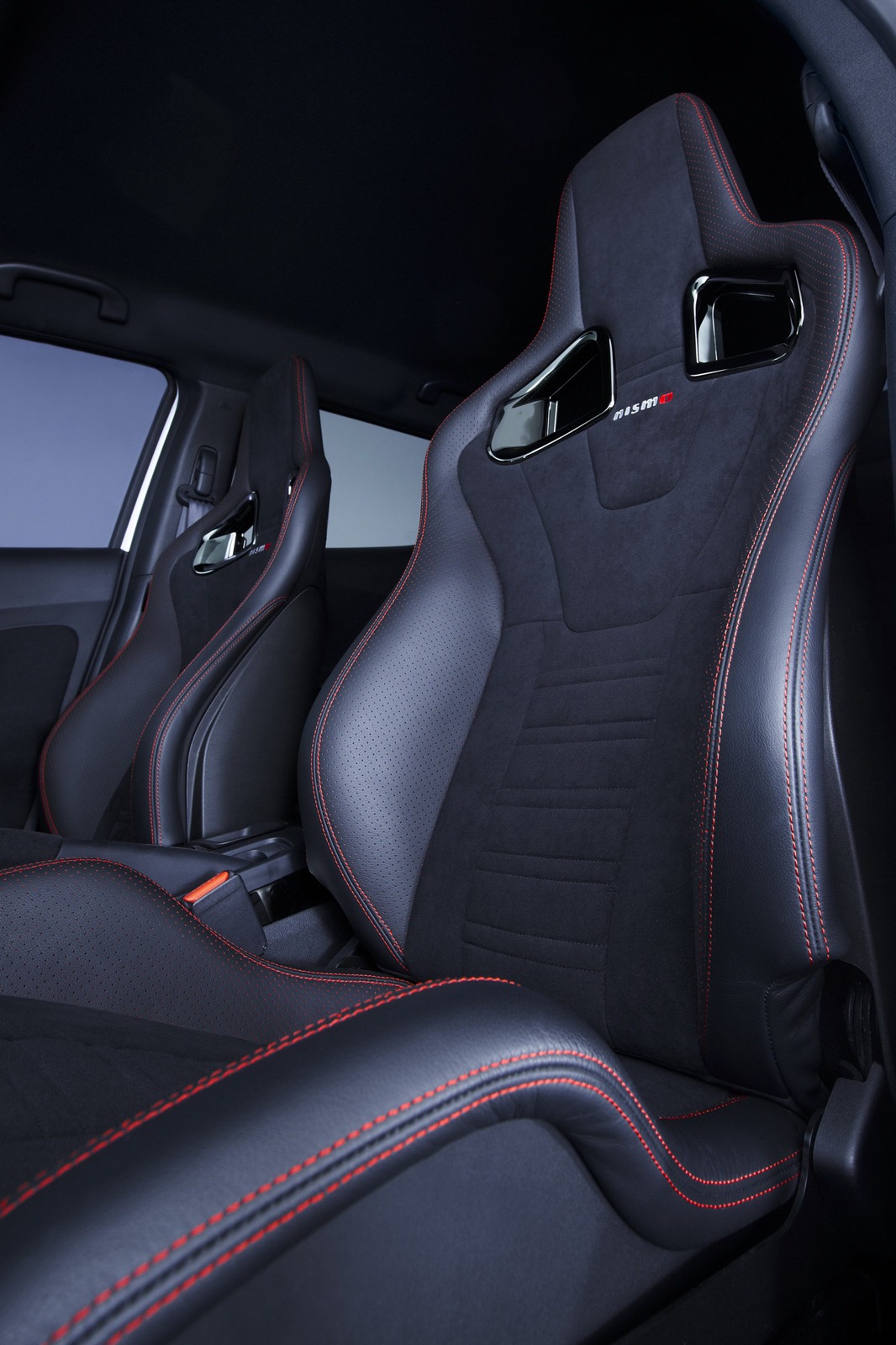 The Nismo treatment continues inside the cabin, where the steering wheel, pedals, gauges, gear knob and door trims have been redesigned to boost the sporty feeling when driving. To further underline the performance personality of the car, special suede-trimmed Nismo sports seats with red stitching have been added for increased holding while cornering.