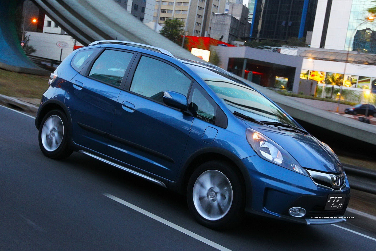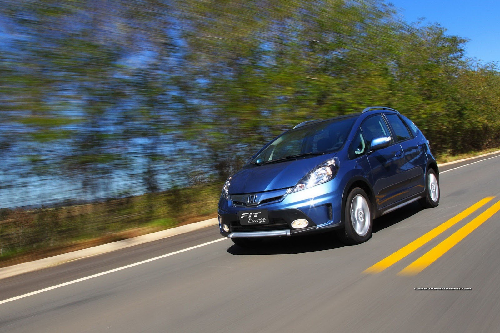 The "FIT twist" is a Fit derivative model developed exclusively for the Brazilian market, and it is the first model developed by the local automobile R&D team in Brazil. While maintaining the ease of use and driving comfort of the original Fit, the "FIT twist" offers a sportier vehicle image with a bold design realized through adoption of an exclusive front grill and roof rails as well as an exclusive seat surface material.