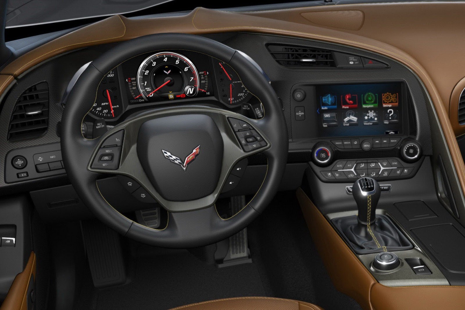 At the core of the Corvette Stingray's driver-focused technologies is the cockpit-mounted Driver Mode Selector, which allows drivers to optimize the car for their driving preference and road conditions via five settings: Weather, Eco, Tour, Sport and Track.
