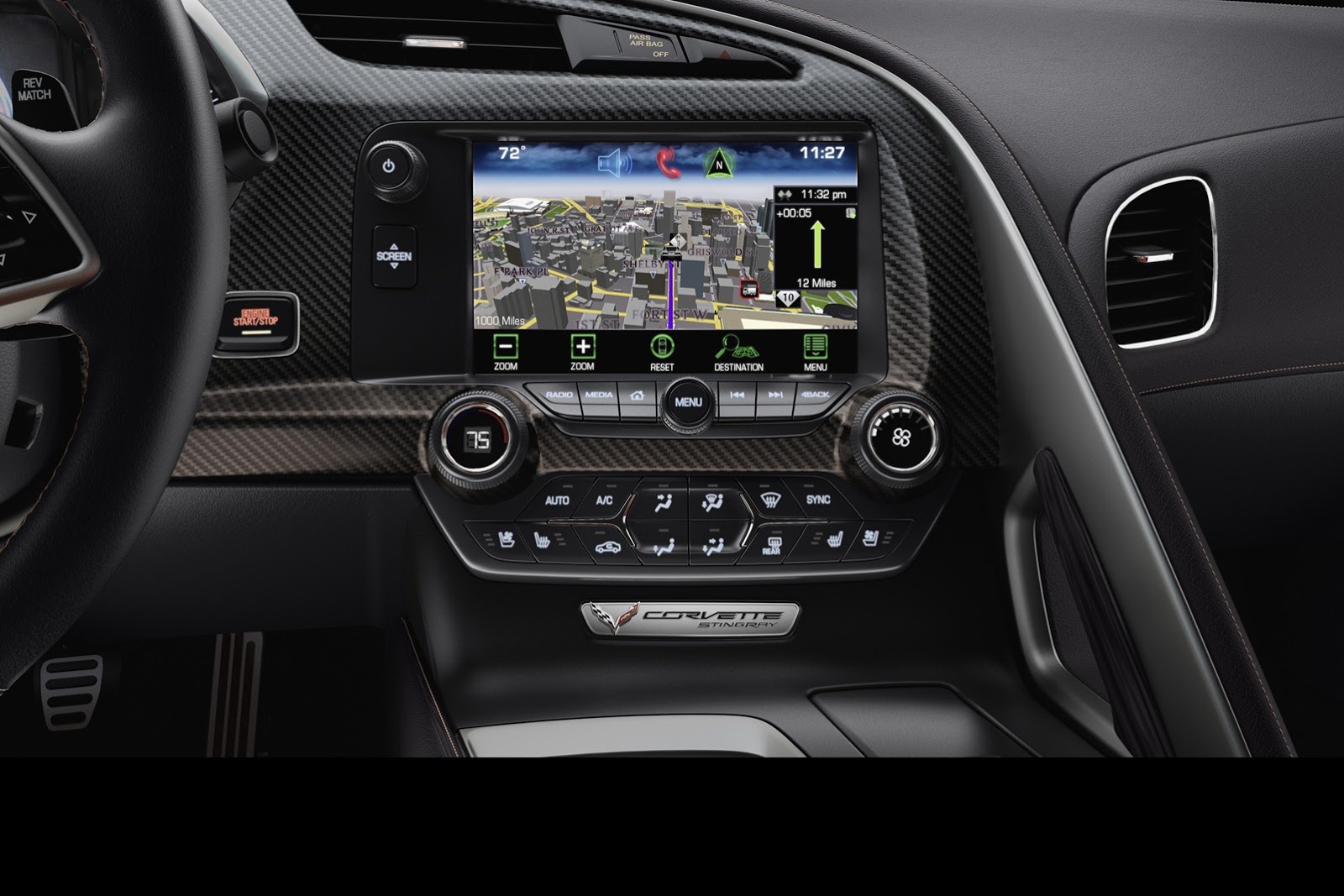 The Corvette Stingray delivers an advanced infotainment system, featuring Chevrolet MyLink and high-definition radio, as well as enhanced OnStar with 3D navigation maps. An additional USB port in the center console, a stand-alone audio input jack and an SD card slot provide seamless connectivity.