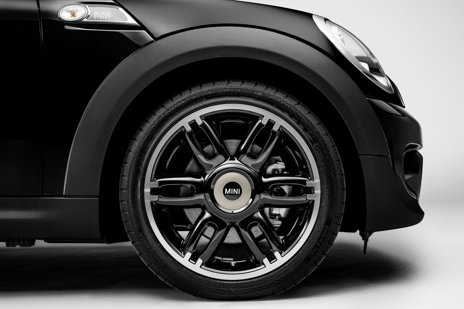 Le numerose dotazioni e gli elementi stilistici realizzati con la massima eleganza donano aldesign e agli interni della MINI Clubman Bond Street un look raffinato e inconfondibile che si distingue dai prodotti di massa presenti sul mercato automobilistico. La scocca dalla vernice esclusiva è stata completata con alcuni dettagli che sottolineano ulteriormente il carattere unicodella MINI Clubman Bond Street. I cerchi in lega da 17 pollici Twin Spoke Black sono stati impreziositi con un esclusivo anello decorativo laccato Cool Champagne. Come le cornici degliindicatori laterali di direzione, così anche i battitacco sono abbelliti dalla scritta Bond Street.