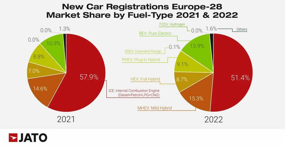 In tutta Europa le elettriche sono cresciute del 29% nel 2022 rispetto al 2021
