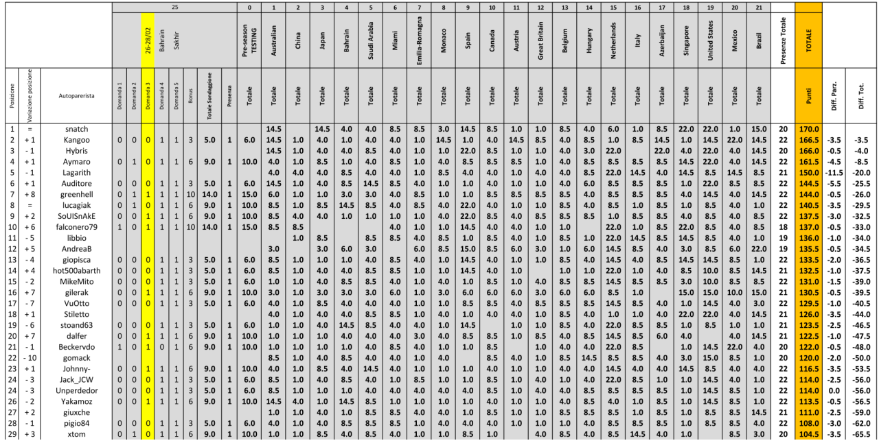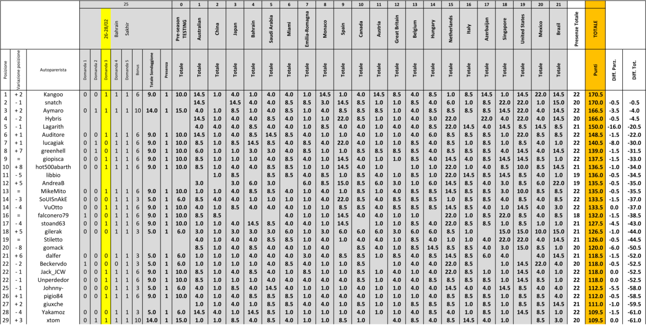 Dall'apertura del sondaggio fino a prima dell'inizio delle prime prove libere il punteggio viene moltiplicato per 1.5
