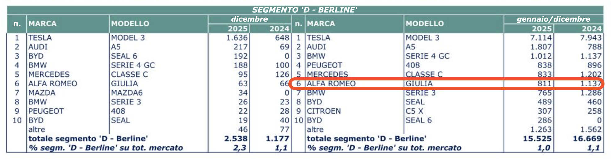 6. Ma ragazzi, oggi, chi è il privato in Italia che si compra una segmento D nuova NON tedesca? L'appassionato, ma l'appassionato si prende la Giulia. E se DEVE vendere alle flotte, che senso ha lanciarla nell'anno 2027 con motori diesel o benzina mhev che resterebbero nel piazzale?