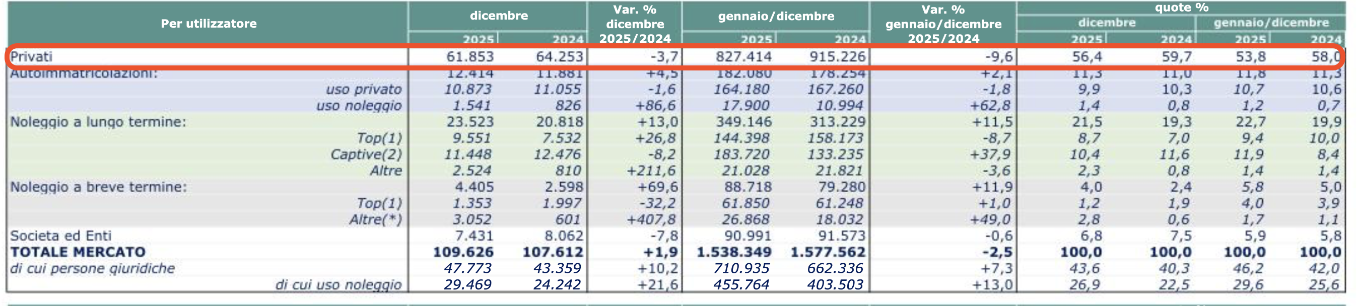hmmm…qualcosa non va con tutte le phev….. Secondo UNRAE il mercato „non-privato“ in Italia 2025 era 46% del totale, invece le phev erano solo 6,5%