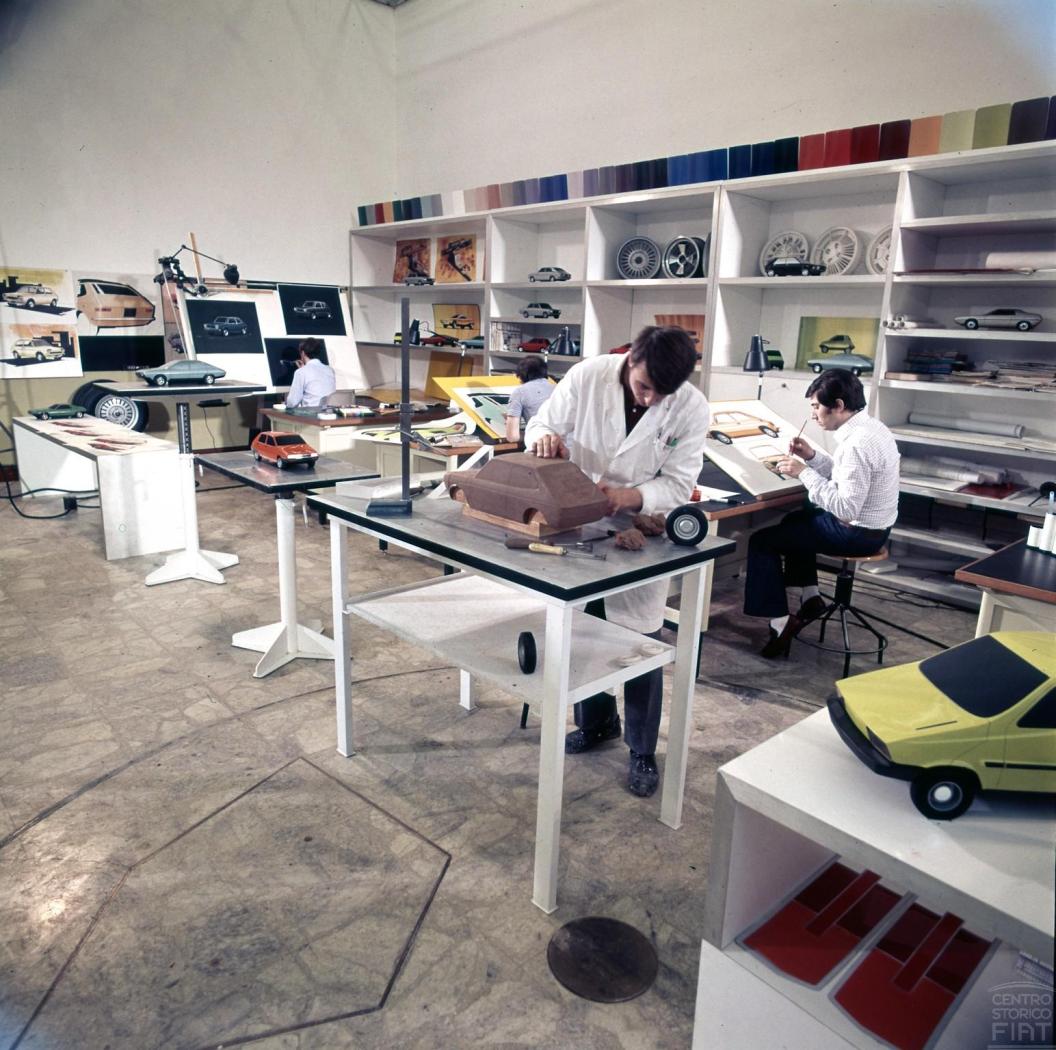 23. Ah, scusa, non avevo letto bene. Purtroppo allora non saprei... Non conoscevo altre proposte, neppure queste varianti della "quattro fari". E quel frontale a becco, fortuna lo hanno lasciato ad altri! Lasciando Large/Croma, torno a tempi più lontani, quelli dei turbolenti primi anni Settanta. Ho messo insieme alcune foto del Centro Stile FIAT di quei momenti, che non mi pare siano ancora saltate fuori in questa discussione: Oltre a cose più o meno note, come i lavori per 127 nella prima foto, o quelli per la nuova media che poi divenne Ritmo nell'ultima immagine, le cose per me davvero interessanti sono il modellone di gesso della seconda foto la miriade di modellini in scala, sparsi fra tavoli e scaffali, di tutte e tre le immagini Secondo il Centro Storico FIAT, quella foto con il modello in lavorazione sarebbe del 1975. E' chiaramente una piccola utilitaria due volumi, ma io non ci riconosco assolutamente nulla, non ho la più pallida idea di cosa possa essere, mai viste forme simili. Dei vari modelliini invece, noto la presenza della "Ritmo di Andreani" e poi tanti altri più o meno curiosi.