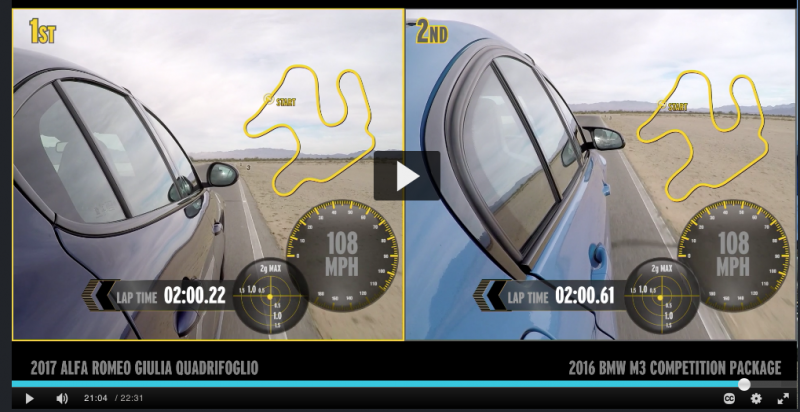 Prendere 3 decimi su un minuto e 37 secondi in pista è un "nulla" totale.. Lo sfiato di un petomane dura di più e sappiamo che si tratta spesso di un lampo... Quindi a mio parere sapendo bene che non esista M4 o M3 testata da rivista tedesca che abbia avuto solo 431 hp direi che per Giulia si tratti comunque di un ottimo risultato per una serie di motivi: *su alcune piste è risultata più veloce di M4 (vedasi Quattroruote) pur pesando di più *in questo specifico articolo distanzia in maniera importante la M3 come punteggio finale, ponendosi a livello della M4 GTS, in un giudizio più globale e consuntivo *pesa purtroppo molto di più della M3 e troppo rispetto al dichiarato *è la prima versione di Q Vs la "millemillesima" di Emme... *arrivare alla pari al primo colpo contro un mostro sacro, è un enorme risultato già di per se. AMG ci ha provato per anni se non decenni, e con ben altri fondi e mercato gia fatto a disposizione, arrivando solo con l'ultima versione a togliersi qualche sfizio contro la Emmona *Emme conta di esperienza colossale specifica su questo tipo di dimensioni-telaio-potenze-dinamica-realtà commerciale , diamo tempo a Q di crescere *440/445 hp veri circa come risulta da test fatti da riviste tedesche per le M testate e minor peso avvicinano il rapporto ai 510 hp purtroppo di una ben più pesante Giulia *il DKG è certamente migliore e più veloce dell'automatico di Giulia e potrei continuare con altri esempi... Insomma per me, si tratta di un pari e talvolta di una vittoria, più che dignitosa contro il riconosciuto benchmark del settore, anche se Emme ha certamente perso peso e smalto nelle sue due ultime versioni Ripeto 3 decimi sono meno di un nulla per determinare quale sia la migliore in questa specifica pista ed in tutte le altre..Mi premono molto di più l'essere partito con il piede giusto con la prima versione di Q, ed aver lanciato un chiarissimo avvertimento alla concorrenza..A tutto vantaggio di tutti noi consumatori...maggior concorrenza= migliori prodotti= più scelta.. Non dimenticando che la rivista stessa ammette che la prova è forse stata influenzata dalle condizioni della pista e meteo a tutto svantaggio della trazione. Ma che si vuole di più? sul dritto poi va come una 997 Gt3 MkII...Parliamone...con il bimbo dietro che urla di gioia...