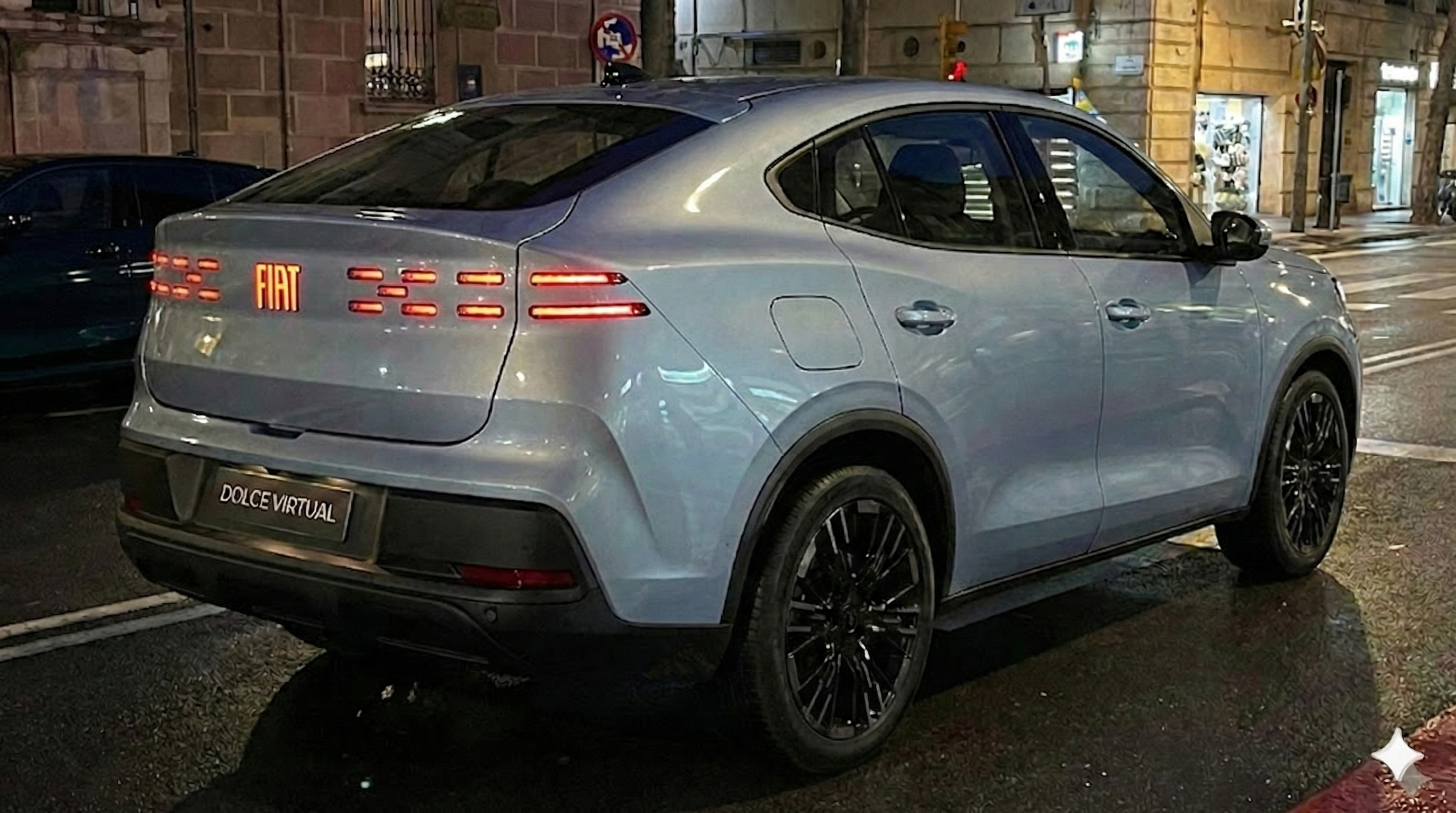 Ed ecco anche il posteriore. La firma luminosa non è esattamente quella in quanto dovrebbe esserci su tutta l'estensione il pattern "a croce" ma non c'era verso che me lo facesse Gemini