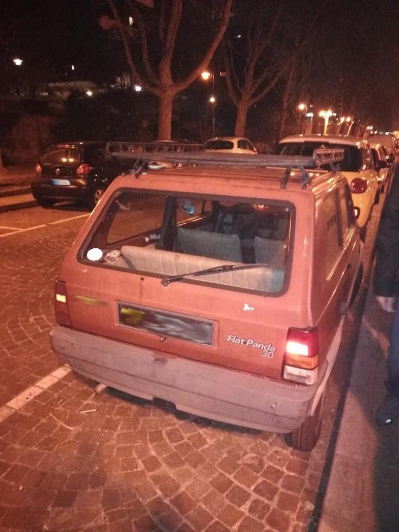 Fiat Panda 900, 1997. Dalle mie parti di questo colore non ne ho mai viste. Esteticamente mancano scritte che riconducano ad un allestimento particolare o una serie speciale, forse in altre parti del bel Paese abbondano di colore nero. Tant'è. Secondo avvistamento, VW Corrado 2000 16V, anno 1992,