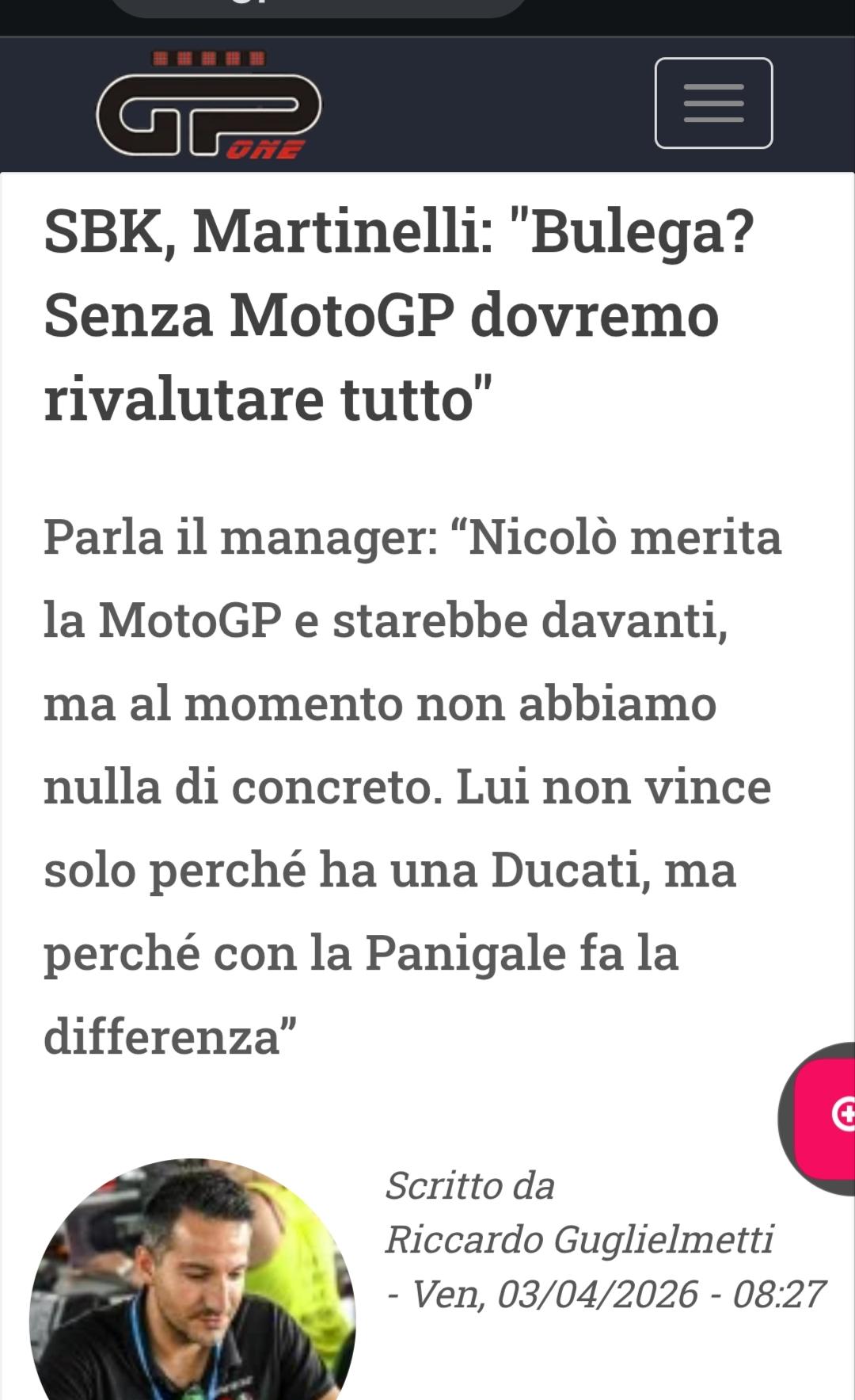 Novità 2027: Pilota di RISERVA Francky LongoLiberty Media vuole il Pilota di riserva permanente. Come giustamente ha dichiarato un noto Team Manager ("credi che ci siano 11 Piloti di riserva pronti a correre in MotoGP!?"), credo che sia una richiesta non fattibile per ora. Però siamo nel bel mezzo di un cambio regolamentare e la figura del "Pilota di riserva/Tester" potrebbe diventare realtà dal prossimo anno. Com'è noto, alcuni Piloti saranno in uscita dalla MotoGP quest'anno e quindi potrebbero essere "impiegati" quali Piloti di riserva dando spazio ai giovani della Moto2. Considerando che gli attuali tester ufficiali sono 5 (Aleix Espargaro, Pol Espargaro, Pirro, Augusto Fernandez, Savadori) ne mancherebbero 6, per raggiungere "quota 11". Penso a Morbidelli, Marini, Rins, Miller. Si arriva a 9. Sullo sfondo ci sono le figure di Dovizioso e Pedrosa, oltre che Rea e Bulega (Test Team Ducati MotoGP).